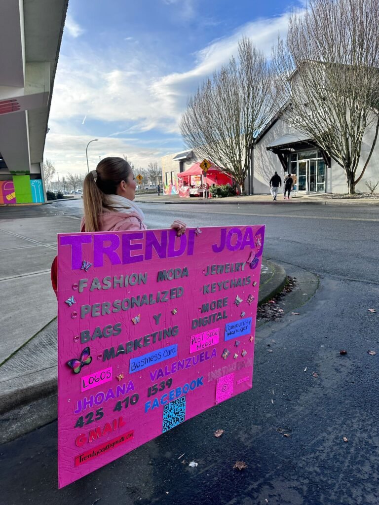 Esas mismas mujeres comenzaron a recomendarme con otros negocios: limpieza, construcción, servicios. Primero fueron tarjetas de presentación, después logotipos, luego algo más grande.